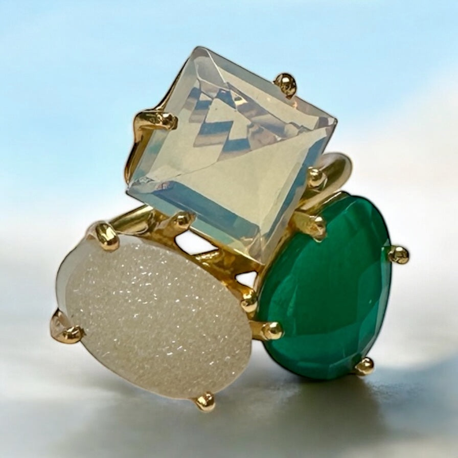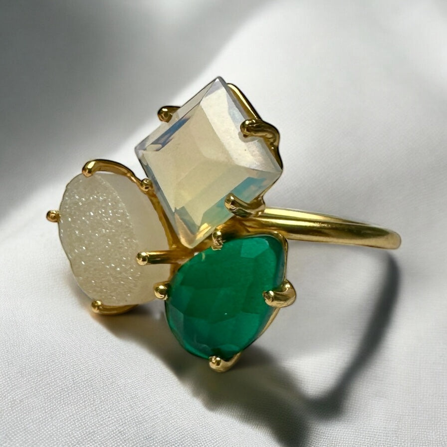Three Wishes Opalite,Emerald And Sugar Druzy Ring