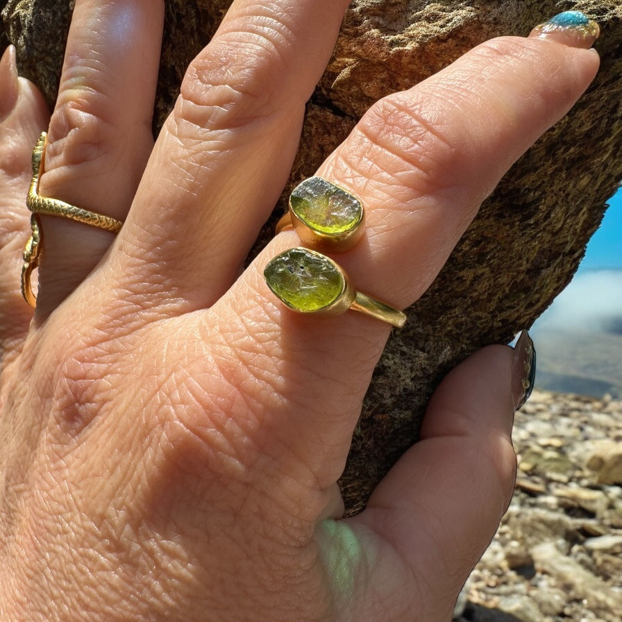 Eclipse & Earth Agate Druzy & Peridot Wrap Ring