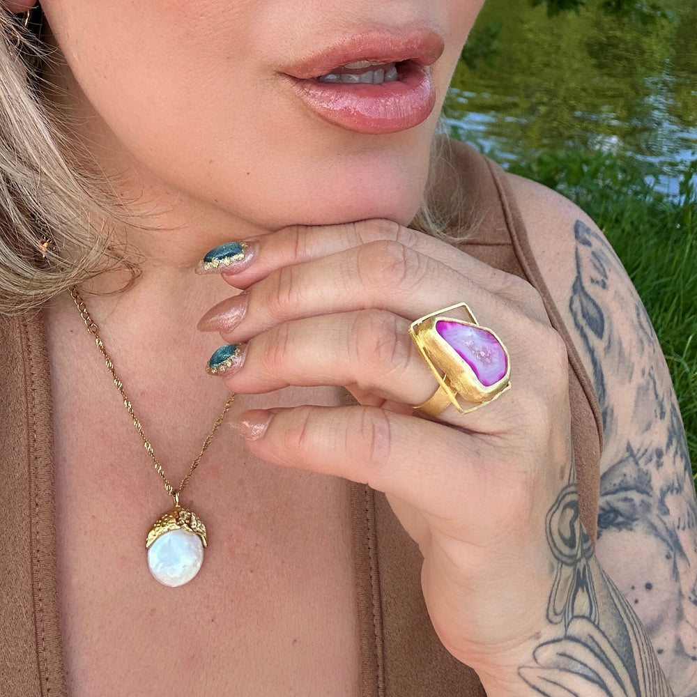 Heart of Gaia – One-of-a-Kind Pink Agate Ring