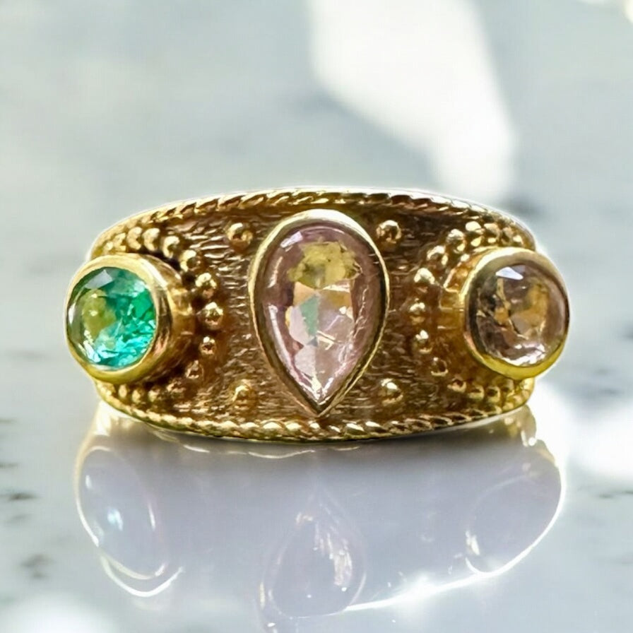 The Empress’s Awakening Rose Quartz And Topaz Ring