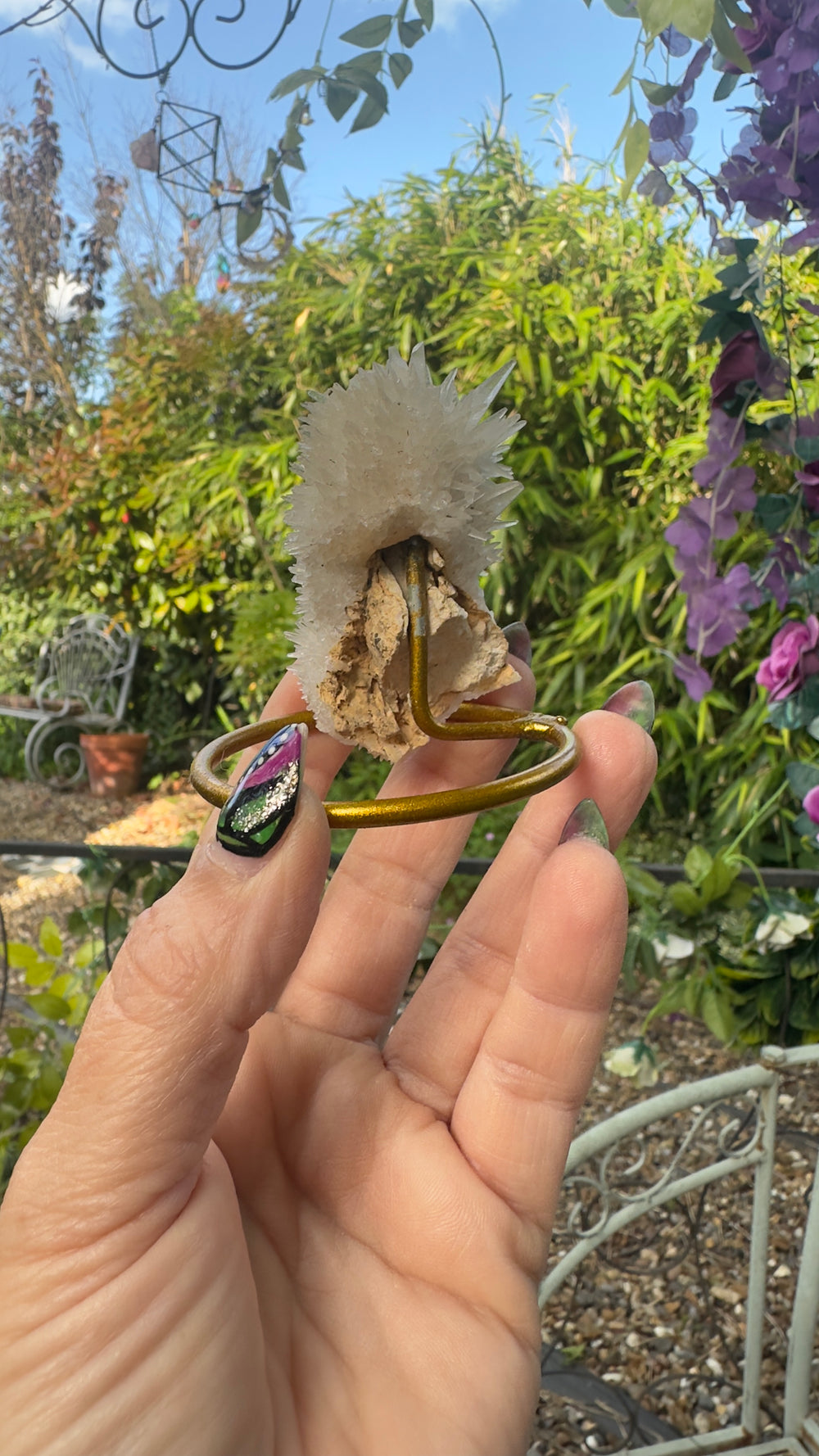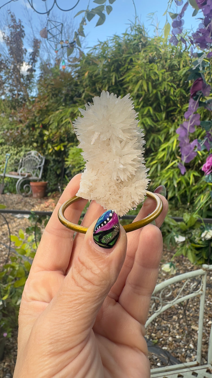 The masterpiece is a quartz crystal cluster from Indonesia on the stand. It holds positive energy and is perfect for enhancing your room decor. The timeless beauty of the Clear Quartz Crystal Cluster decor can give your space an exceptional touch. The clear quartz crystal brings positive energy and is ideal for the home or office.