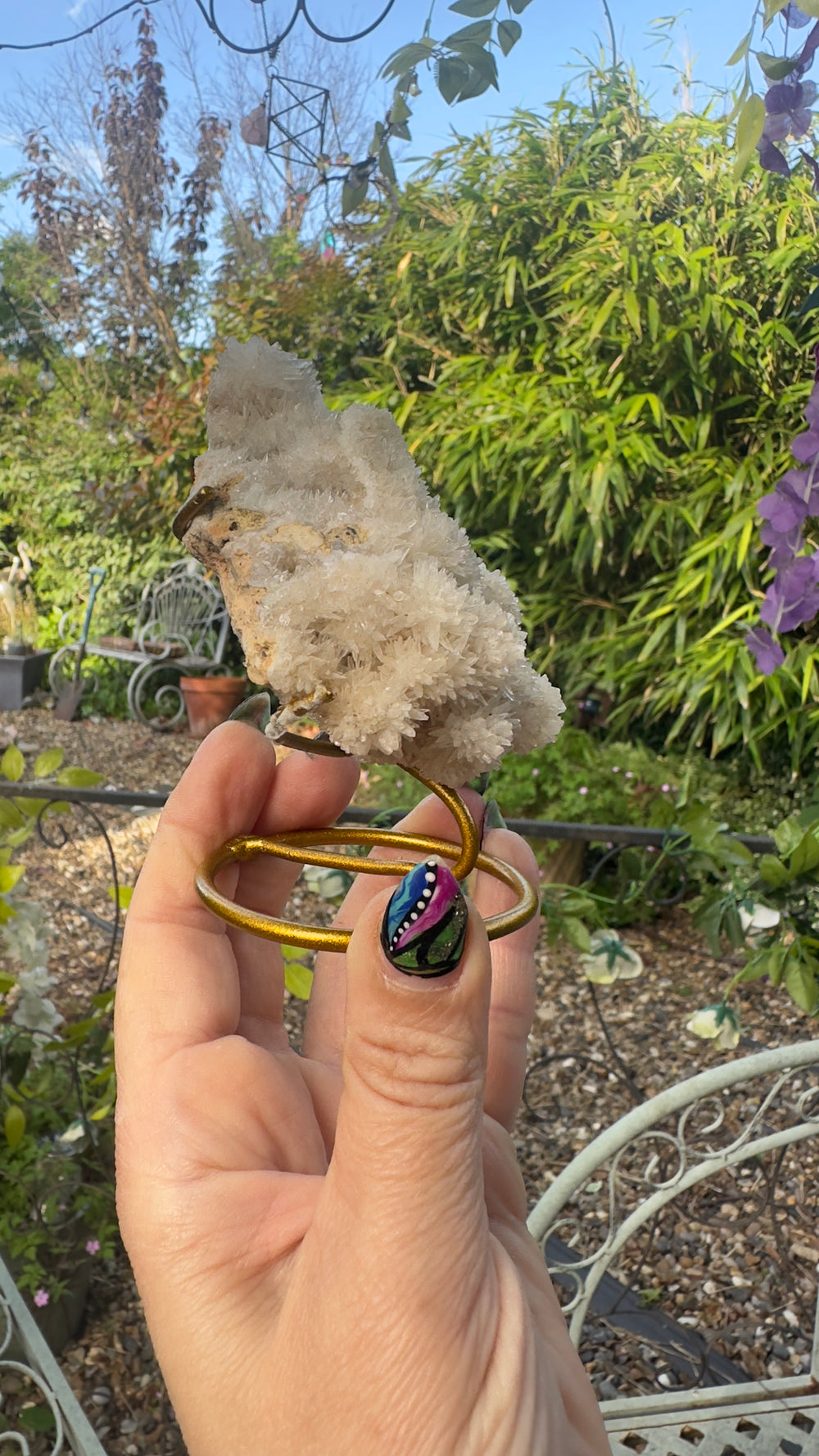 Bring nature's beauty indoors with our Clear Quartz Crystal Cluster on Stand. This stunning decor piece features pristine clear quartz crystals artistically mounted on a sturdy stand. Ideal for home and office settings, this display enhances your space's elegance and radiates positive energy. Add this exquisite cluster on stand to your collection for a sophisticated touch.