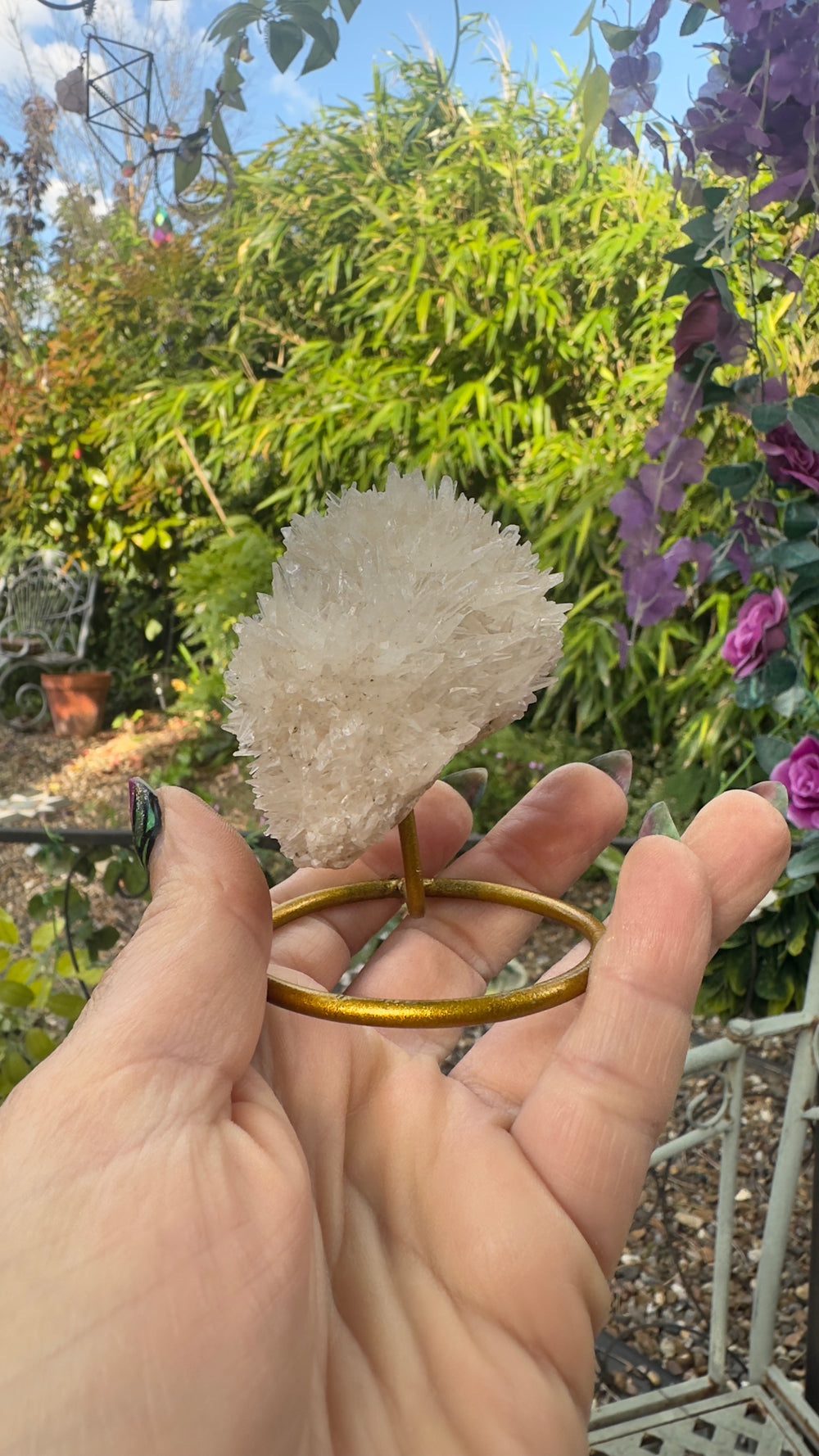This exquisite Clear Quartz Crystal Cluster on the Stand will add more beauty and pure energy to your environment. Every crystal that covers them is exceptionally glossy and transparent, reflecting light with an unparalleled brilliance. Also known as the master healer, clear quartz filters and cleanses the energy of your surroundings, making it the perfect addition to any altar, meditation space, or home décor. Regardless of your degree of crystal experience, this lovely cluster promises to improve your spiritual practice and bring clarity and harmony into your life.