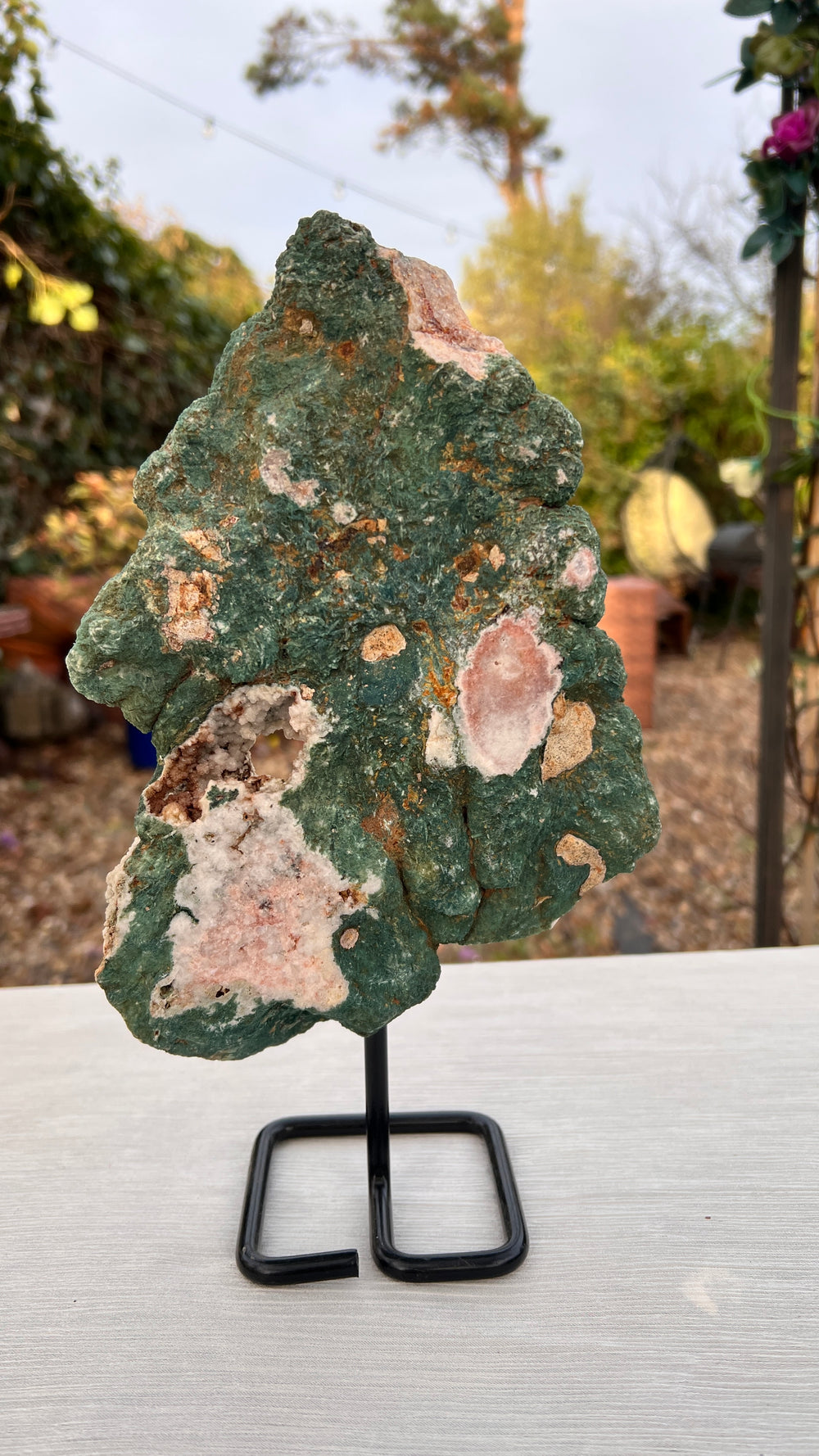 Discover the mesmerizing beauty of this natural Pink Amethyst slab. This stunning piece showcases a captivating blend of soft pinks and deep purples, creating a truly unique display. The intricate patterns and formations within the crystal are a testament to the wonders of nature. Pink Amethyst is believed to possess calming and soothing energies, making it a perfect addition to any space seeking tranquility and harmony. This large slab is an ideal statement piece for your home or meditation space.